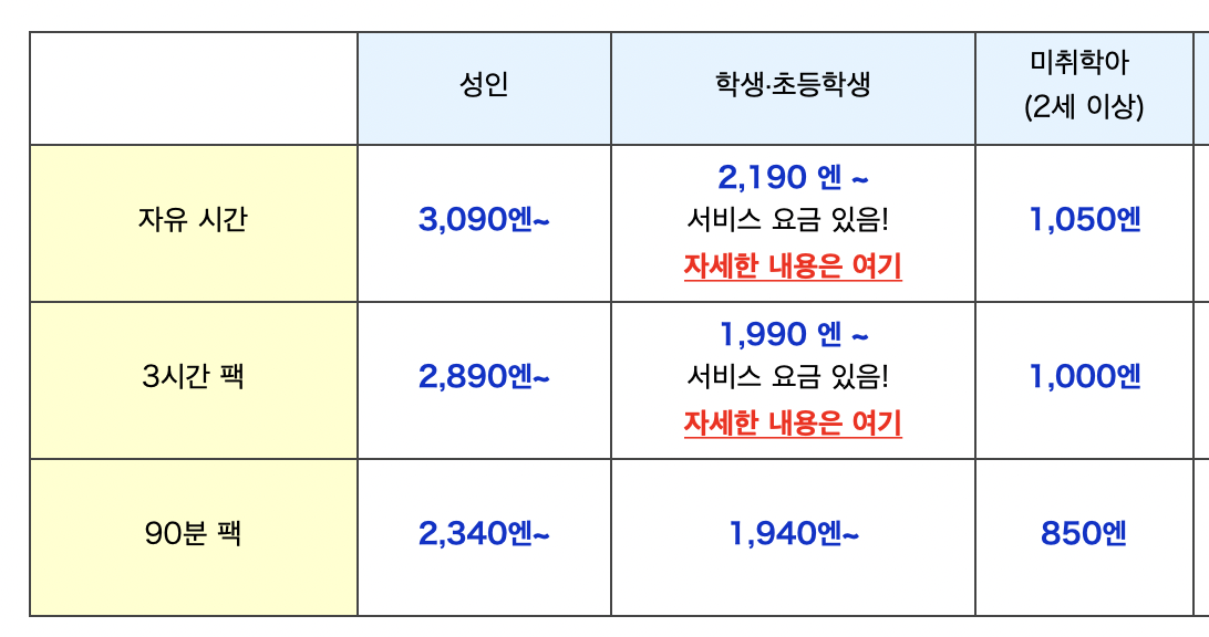 시간 단위로 결제하면 안에 있는 걸 거의 다 자유롭게 이용 가능하며, 크게 비싸지 않으며 안에서 간단히 식사나 음료도 할 수 있다.